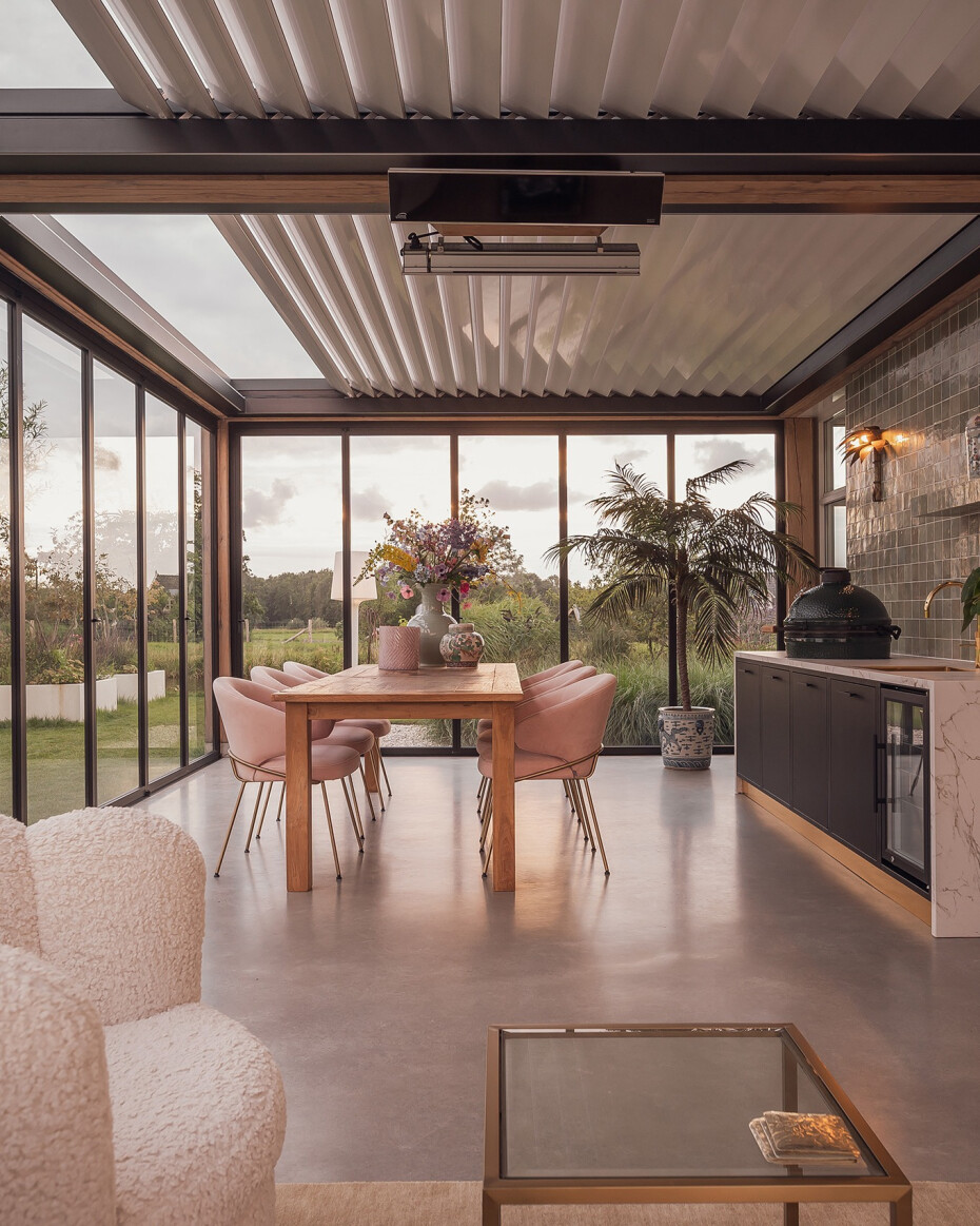 Een glazen overkapping in Amersfoort laat daglicht volop binnen. Het zorgt voor een lichte en open sfeer. U geniet door het vele daglicht van een helder uitzicht op de tuin, zelfs bij slecht weer. Met glas kiest u voor een moderne uitstraling en eenvoudig onderhoud. Met glazen schuifwanden maakt u de ruimte daarnaast flexibel bruikbaar. Ideaal om zorgeloos te genieten van de buitenlucht onder de overkapping.