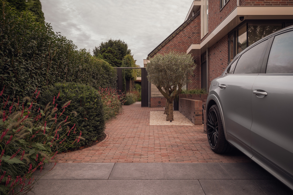 Een tuin met oprit draait niet alleen om parkeren. Het is de eerste indruk van je woning. Door beplanting te combineren met natuurlijke materialen ontstaat er rust en samenhang. Denk aan groene hagen die de oprit begrenzen of lage siergrassen die licht meebewegen in de wind. Zo wordt de route naar de voordeur onderdeel van de beleving.