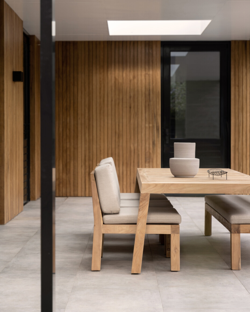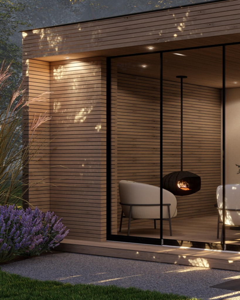 De tuin als plek om te cocoonen, ontmoeten, werken en ontspannen. De overgang tussen binnen en buiten vervaagt steeds meer. Met maatwerkoplossingen zoals houten loungestructuren, geïntegreerde zitplekken en buitenhaarden ontstaat er een nieuwe manier van buiten leven – warm, stijlvol en functioneel.