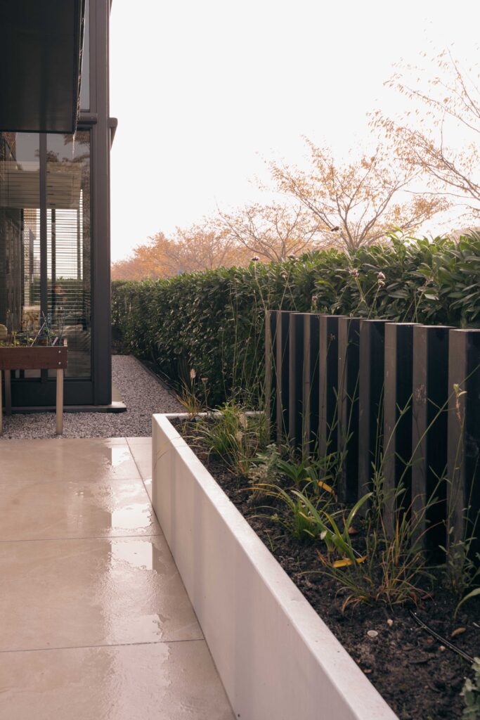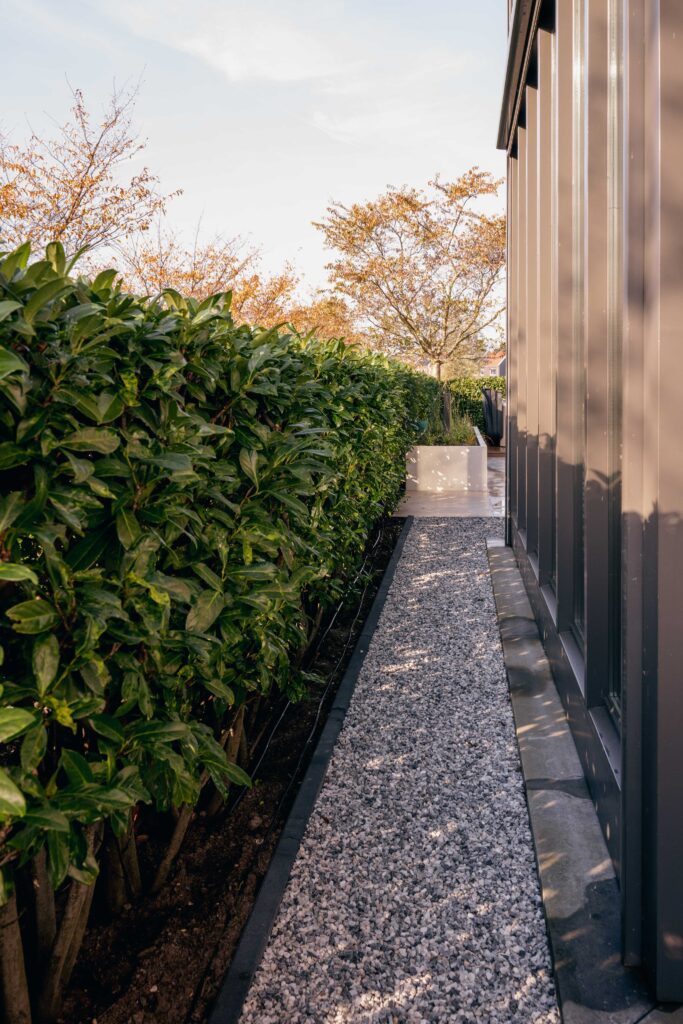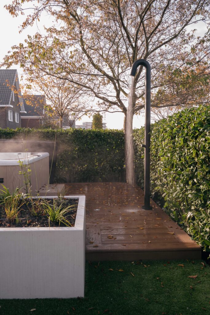 De Jacuzzi en buitendouche geven de tuin een wellness gevoel terwijl het uitgedachte lichtplan ook in de avonduren zorgt voor sfeer, diepte en veiligheid.