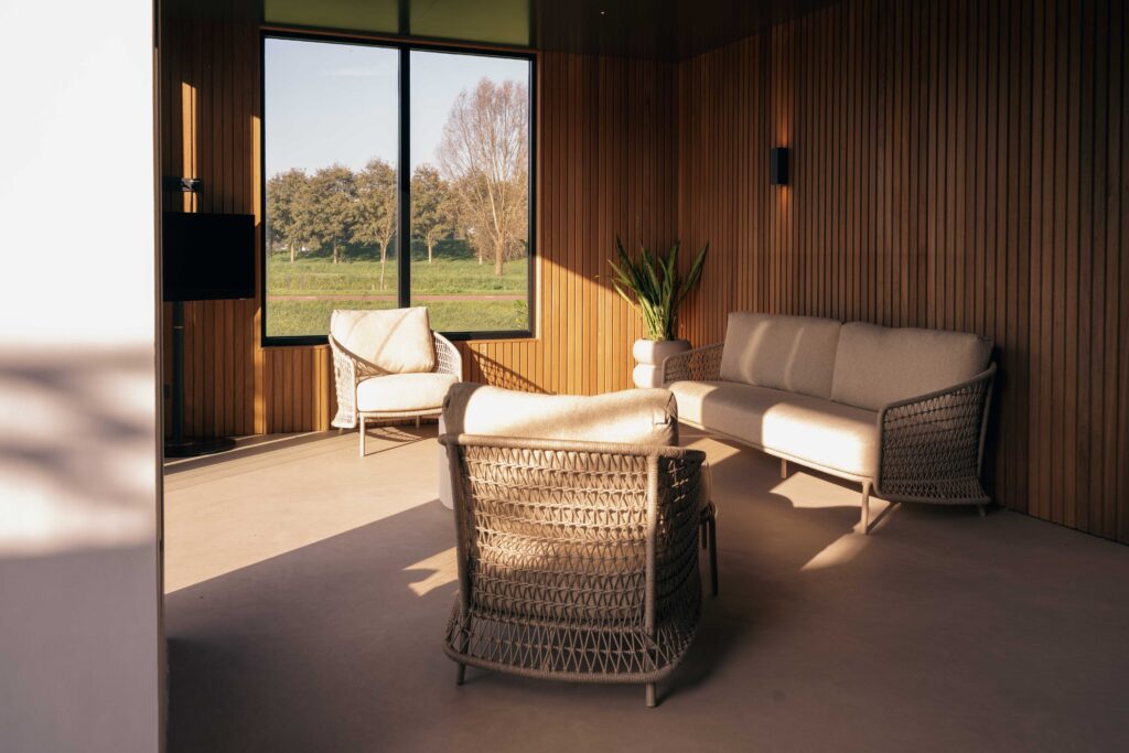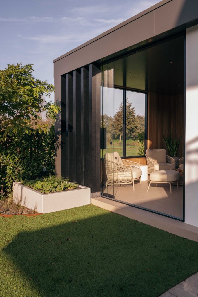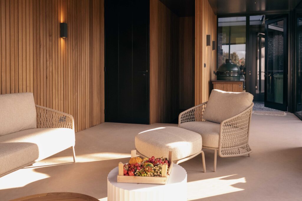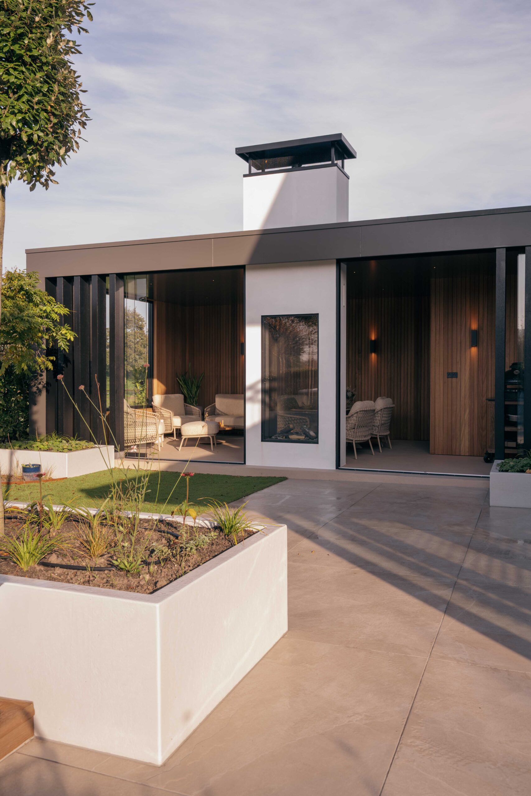 Deze Buitenpracht tuin met strak lijnenspel zorgt voor een mooie luxe combinatie. Vanuit de woning loopt u via een doorlooptrap naar het buitenverblijf.